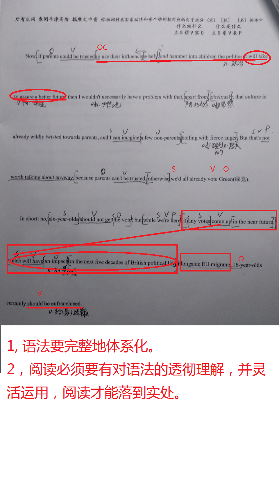 二 1 所有生词 查阅牛津或朗文高阶,词典里单词意思放在上下文反复理解,揣摩文中意; 2标动词种类实系助情和每个动词相对应的句子成分(定)[状]{名},划清句子成分,理解吃透长难句; 3英译中,文章反复理解,文章和题目意思都理解透彻后再做题目。
